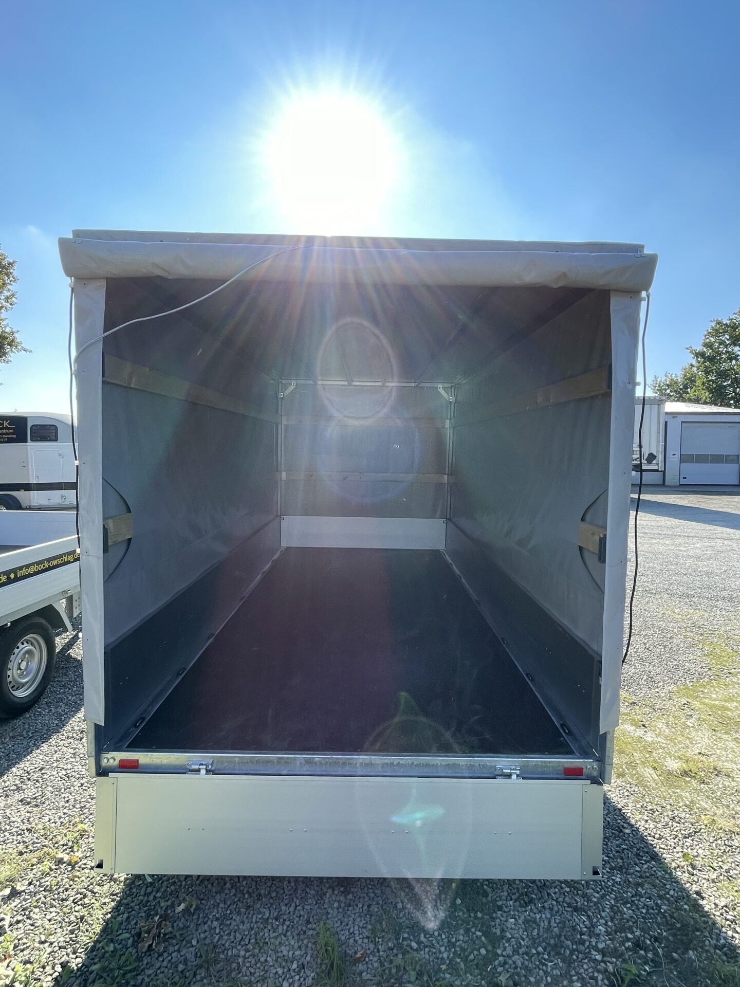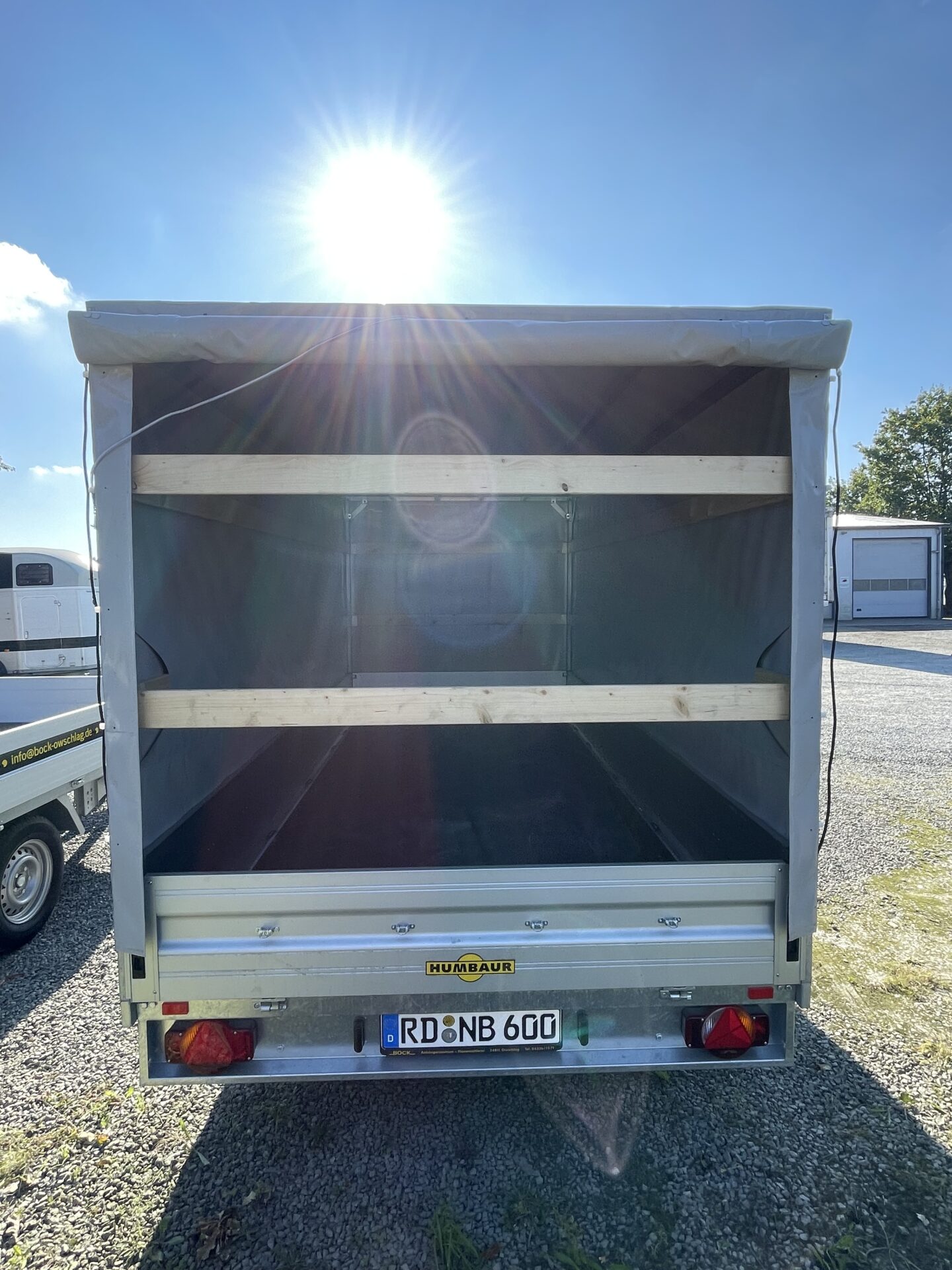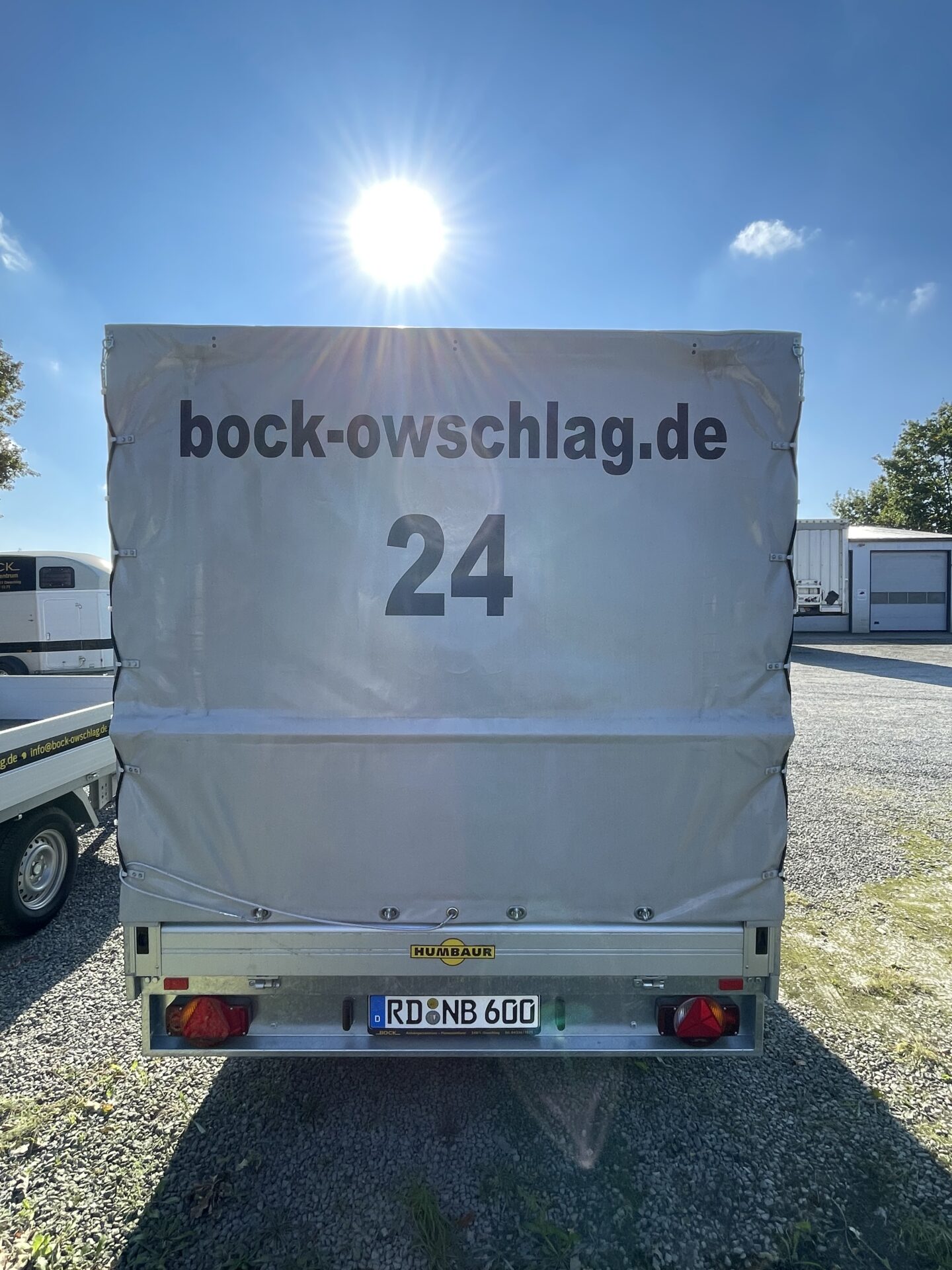 Ein Humbaur Tandem/Hochlader mit einer Hochplane