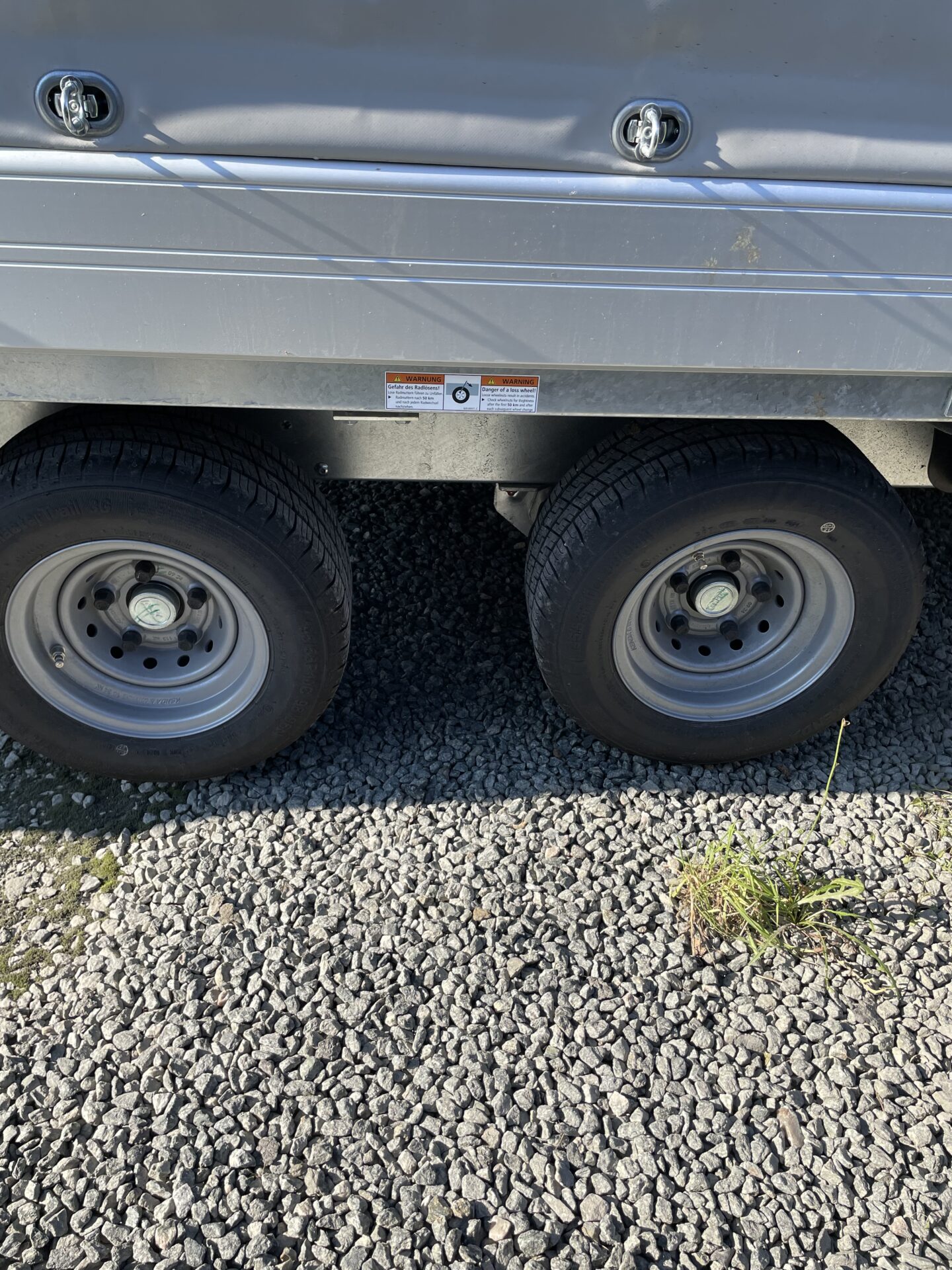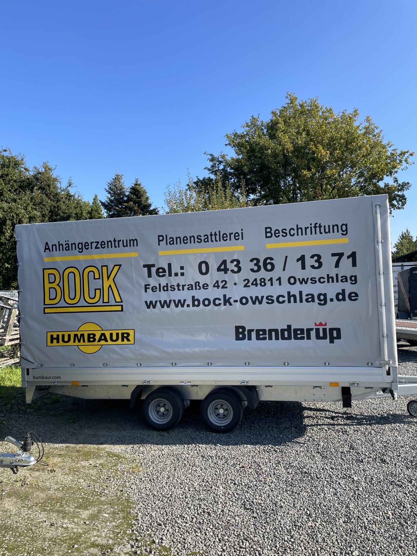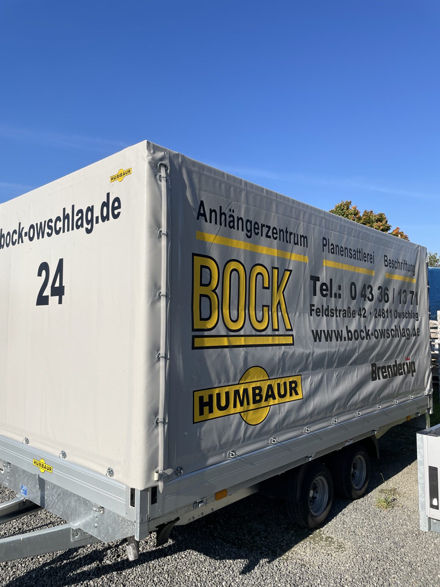 Ein Humbaur Tandem/Hochlader mit einer Hochplane